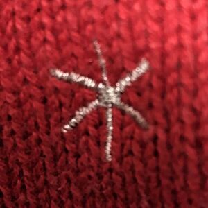 Classic Elements Christmas Snowman, Cardigan Sweater. Women's size XL (18), Red, 55% Ramie & 45% Cotton, Full Zip, Ugly Christmas Sweater. 4 Snowmen on the front with floppy scarfs, embroidered Snowflakes detailed with silver beads, Ribbed Collar, Cuffs and Waist.