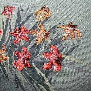Classic Elements Green Embroidered Beaded Floral 3/4 Sleeve Top Size Large