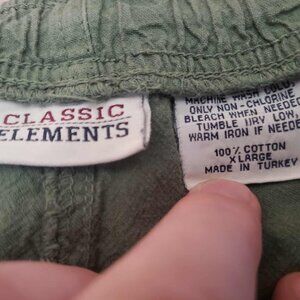 Classic Elements Men’s Olive Green Cotton Drawstring Shorts XL | Casual