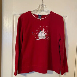 Classic Elements Red Long Sleeve Crewneck Snowman Sweatshirt Size L 90s Grandma