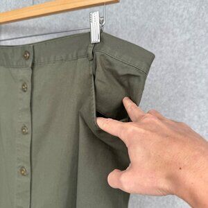 Classic Elements VTG Button Front Midi Skirt Size 18W Olive Green Elastic Waist
