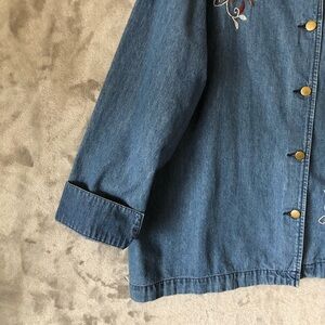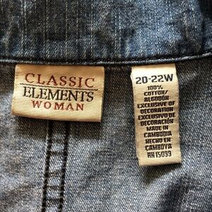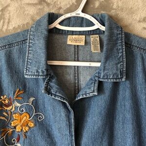 Classic Elements Women Denim Top Size 20-22W Embroidered Floral Bohemian