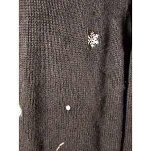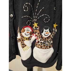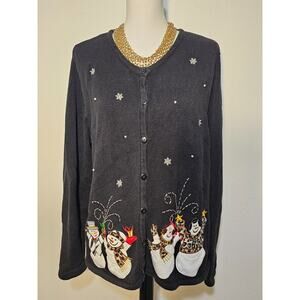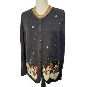 Classic Elements Womens Black Button Up Cardigan Holiday Snowman Size XL 18