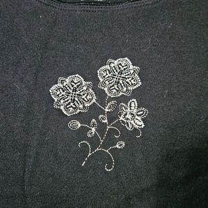 Classic Elements Womens T-Shirt Black Size XL 100% Cotton Short Sleeve Flower