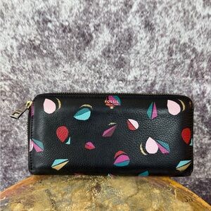 Classic FOSSIL Wallet Clutch Black Zip Around Long Wallet Clutch vintage Leather