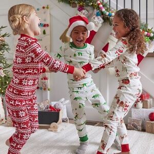 Leaping stags and lacy snowflakes give these pajamas their festive Fair Isle style. Crafted of supersoft organic cotton, they'll keep your little one comfy and cozy as they dream of Christmas.