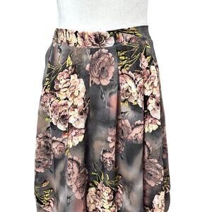 Perfect for vintage-inspired looks, this floral A-line skirt is a versatile addition to your wardrobe. Its layered hem and soft tones make it ideal for styling in various ways.