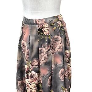 Classic Fashion A-Line Skirt Floral Layered Hem Elastic Waist Pink/Gray W Large