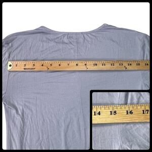 Women's soft stretchy 3/4 sleeve tunic tee shirt top from Classic Fashion Collection. It looks gray but it is actually a very pale purple. Thin and lightweight, it will go great with leggings. There are no other tags other than size and brand. Due to light & screen variations, colors may vary slightly from the images
