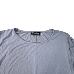 Women's soft stretchy 3/4 sleeve tunic tee shirt top from Classic Fashion Collection. It looks gray but it is actually a very pale purple. Thin and lightweight, it will go great with leggings. There are no other tags other than size and brand. Due to light & screen variations, colors may vary slightly from the images