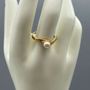 Classic Faux Pearl Solitaire Ring, Gold Tone Sleek Minimalist Band