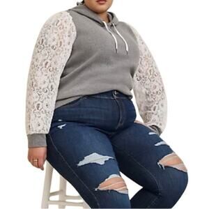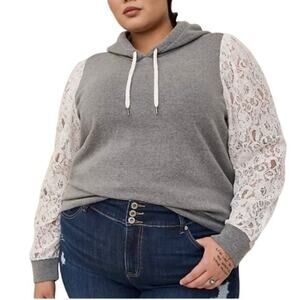 Classic Fit Cozy Fleece Lace Sleeves Hoodie Size New 2X (18-20)