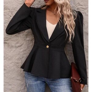 Classic Fitted Double Breasted Button Flare hem Blazer