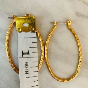 Classic Gold Tone Faceted Metal Oval Hoops Pair of Earrings