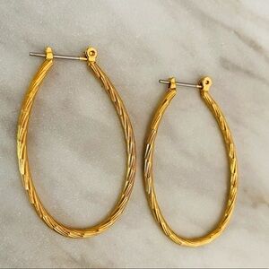 Classic Gold Tone Faceted Metal Oval Hoops Pair of Earrings
