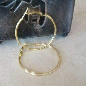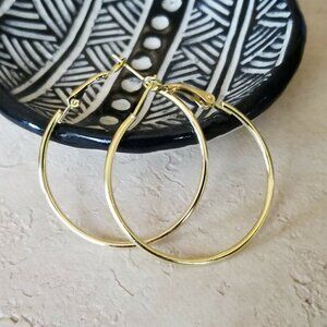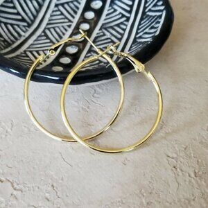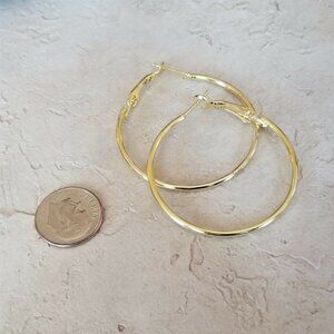 Classic Gold Tone Hoop Earrings 40mm 1.6" Leverback Minimalist