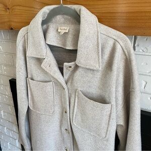 - this jacket is the right level of thickness to provide a perfect layering piece for both spring & fall. Its neutral, creamy grey coloring is versatile enough to be the perfect layer to any outfit