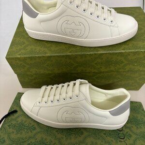 Classic Gucci ace 'White Gray' Men's Flat leisure shoes new with box