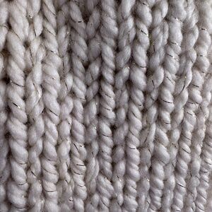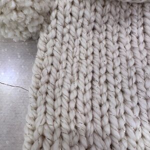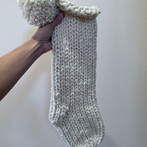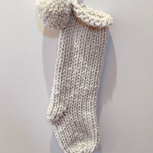 Classic hand knit stocking in really pretty cream color with gold tinsel woven through! Nice and soft to the touch!
