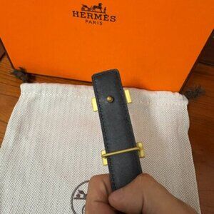 Add a touch of Hermes luxury to your look with this elegant brown leather belt. It’s distinctive H buckle in a radiant gold finish makes it a statement piece suitable for both everyday and special occasions. Size: 100