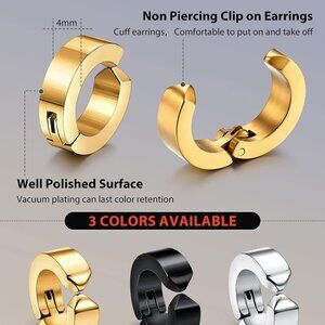 Features: These timeless hoop earrings are perfect for anyone who wants to add a chic touch without piercing. The clip-on design provides a secure fit that’s comfortable all day, and the sleek gold stainless steel gives a polished, durable finish. Great for everyday wear or dressing up for special events.