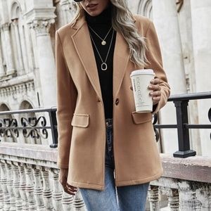 Classic Khaki Tan Button Minimalist Jacket Blazer