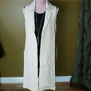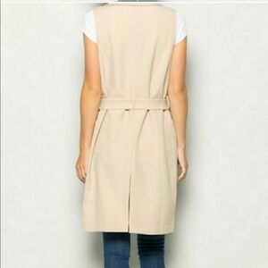 Cute trench-inspired khaki vest. Comes with belt and has pockets. 100% Polyester. Add to bundle to save! Perfect for Fall. (D2)
