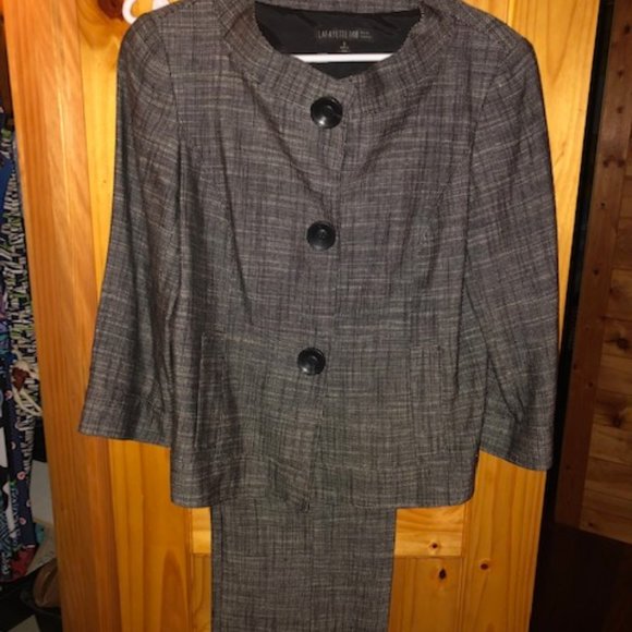 Classic jacket and slacks in Lafayette 148 houndstooth style. Both jacket and slacks are size 6. Worn twice.