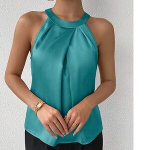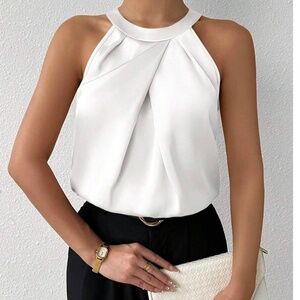 Classic Satin Pleated Solid Tank Top
