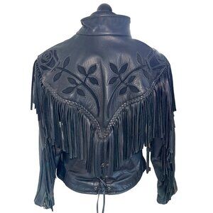 Classic Leather Riverside Vintage Womens Jacket Size 10 Black Fringe Motorcycle
