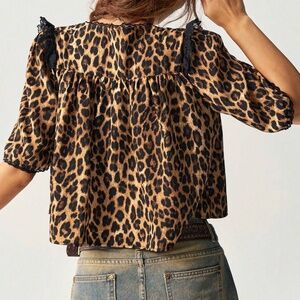 Classic Leopard print Lace Button Short Sleeve Blouse