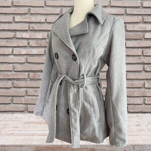Classic Lines Heather Grey Double Breast Tie Waist Belt Fully Lined Pea Coat