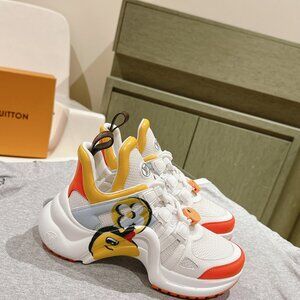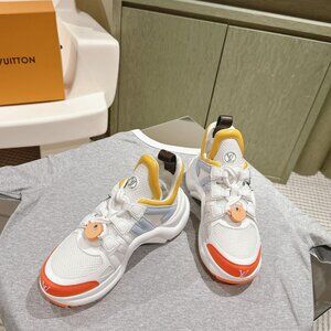 Please see the second picture,Louis Vuitton shoes in classic color scheme, excellent condition, with accessories, exuding luxury.