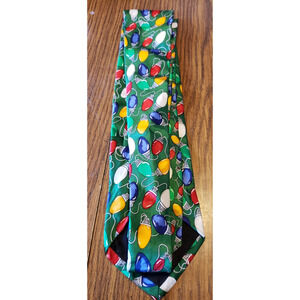 Classic Luxury Bowen Brothers Necktie Silk Green Christmas Tree Lightbulbs Tie
