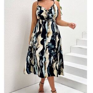 Classic Marble Print Cami Strap Split Thigh Midi Dress