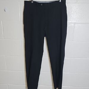 Classic Men's Black Pants Button Back Pockets Front Slash Pockets Flat Front