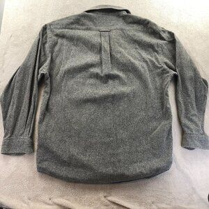 This timeless shirt exudes an air of rugged sophistication. Crafted from 100% cotton, it features a textured gray exterior and a plaid-lined collar, combining vintage charm with modern comfort. Its button-up design and dual chest pockets lend both practicality and aesthetic appeal, making it a versatile garment for various settings.