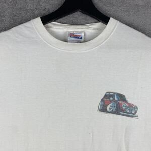 Classic Mini Cooper Shirt Mens Large White Graphic Double Sided Hanes Beefy-T