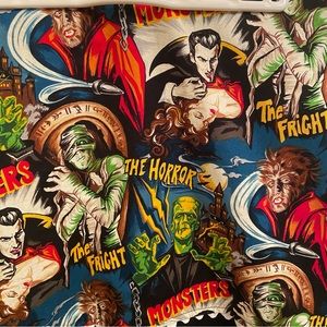 I love this skirt and if it still fit me I’d definitely be keeping it. However, it’s been collecting dust in my closet for years and deserves to be shown off. Size small, but runs larger in my opinion. Classic movie monsters print with ric rac white ribbon detail. Zipper on the back. Front is identical to the back. 20” in length. Waist is 17” across with no stretch. Give this baby a good home.