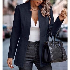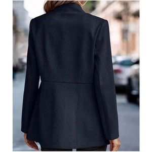 Classic Navy Blue Herringbone Blazer Jacket Coat