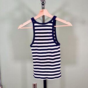 Designed with thin straps and a flattering fit, the timeless navy and white stripe pattern makes it a versatile choice for any occasion, whether you're dressing up for a lunch date or keeping it casual for a weekend adventure.