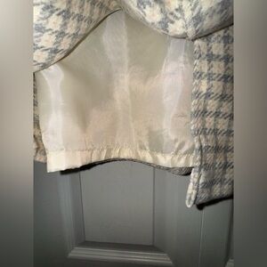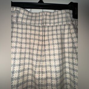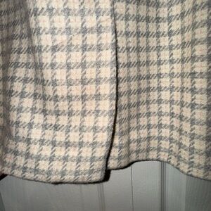 Elevate your wardrobe with this classic houndstooth 50% wool skirt. Featuring a stylish cream, gray and pink pattern, it's perfect for any occasion.