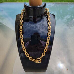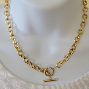 Classic OT Buckle Cable Chain Choker Necklace GoldTone TitaniumSteel 15"