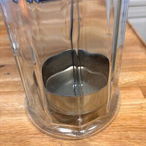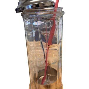 A classic soda fountain accessory, this dispenser features a timeless design. It includes a chrome lid and base, paired with a clear glass body. Its 11-inch height makes it suitable for holding straws of various lengths, blending functionality with vintage charm. Ideal for both home and commercial settings.
