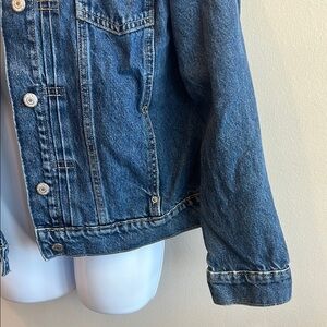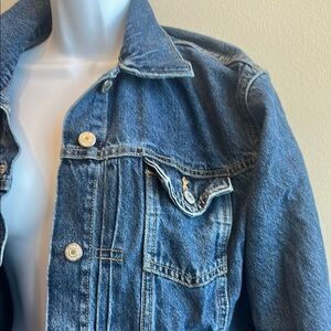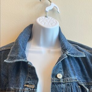 Stylish blue denim jacket with button closure. Perfect for casual wear.