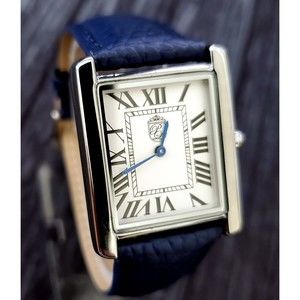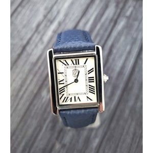 Pierre Lucerne 1888 Vintage Tank Style Swiss Inspired Mens Watch Blue Band