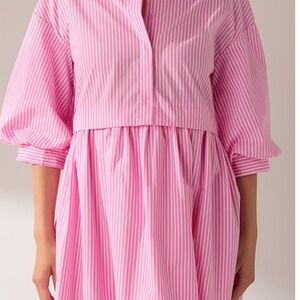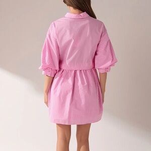 Stripe Puff Sleeve Shirt Dress with a collared half placket and puffed sleeves. Front button closure to ensuresa secure fit. Never worn (a size too big for me) so in excellent condition - perfect for garden parties, lunches, sorority gatherings, and any other occasion that calls for casual elegant with a classic feminine flair!