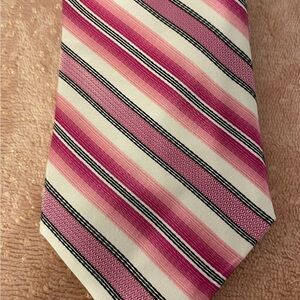 Elevate your style with this classic striped tie. The pink and cream colors add a refined touch to any outfit, perfect for both formal and casual occasions.