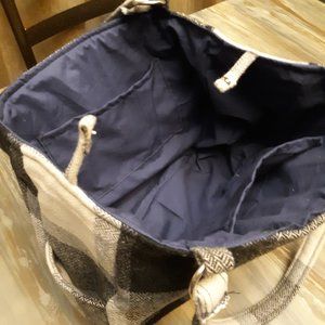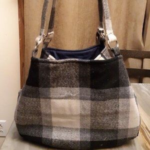 Classic Plaid Wool Handbag Purse Shoulder bag Satchel Gray Black Ivory Blue Med