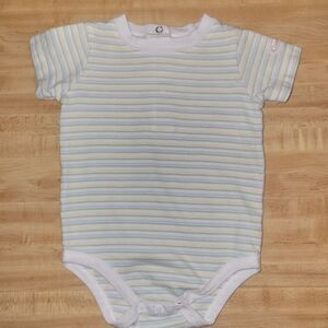 Adorable Classic Pooh baby romper and short-sleeve shirt set. Features a sweet embroidered scene of Winnie the Pooh flying a kite with the phrase Fly Up! on soft green overalls. Comes with a coordinating striped short-sleeve undershirt. Perfect for everyday wear, photo shoots, or as a nostalgic gift for any Pooh fan.